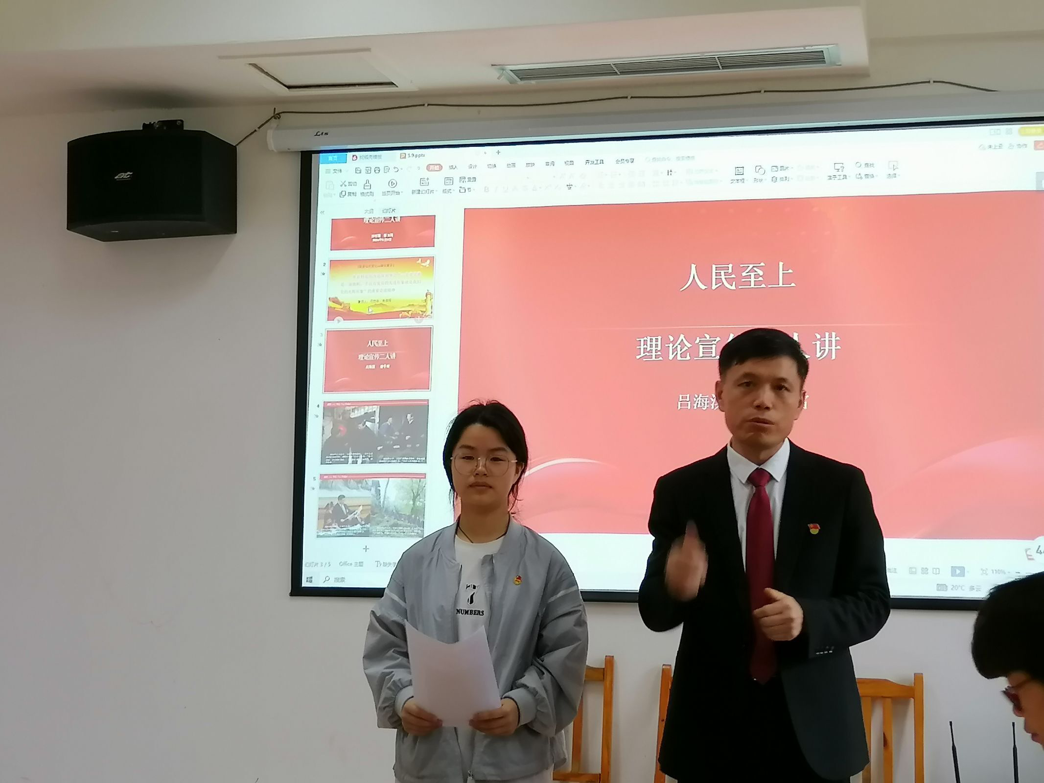 吕海滨副经理与潘冬雪同学的宣讲主题是《人民至上》,从“贵州好人”李仁贵的故事着手讲述“人民至上”的理念,体现了党和国家始终坚持人民至上的根本执政理念,充分体现了党的理想信念、性质宗旨和初心使命的统一。