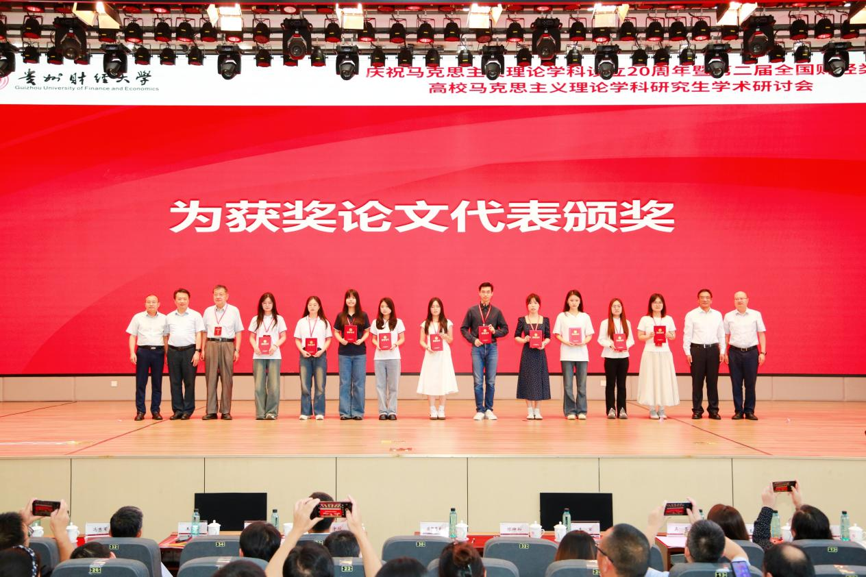 开幕式上举行了颁奖仪式,本次研讨会聚焦“庆祝马克思主义理论学科设立20周年”主题,收到来自全国高校马克思主义理论及相关学科硕博研究生论文500余篇,经专家严格评审,共评出154篇获奖论文。与会领导嘉宾为论文获奖的同学代表进行了颁奖。